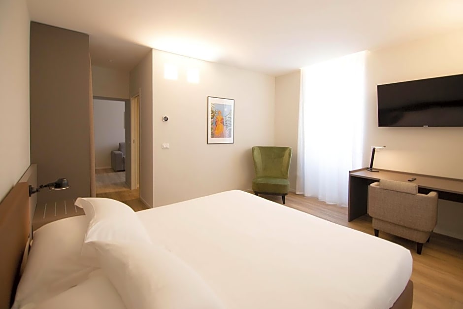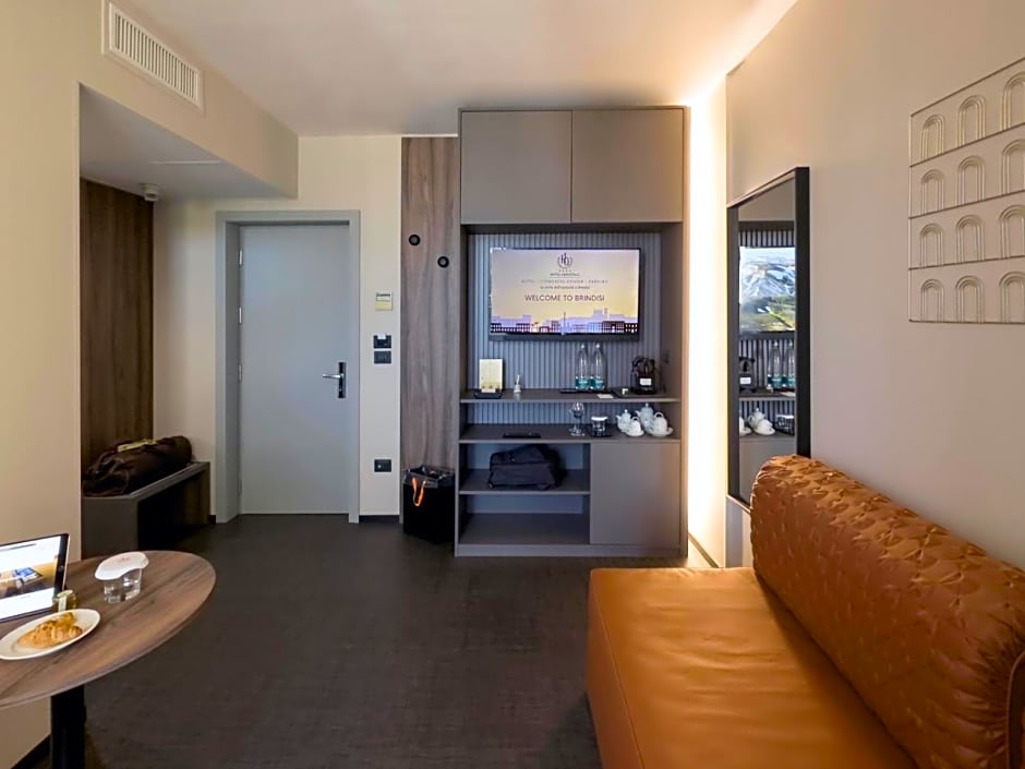 With modern furnishings and spacious bathroom with mosaic tiles, hairdryer and slippers. Air-conditioned room with free Wi-Fi, an LCD TV with Sky channels and mini-bar.
